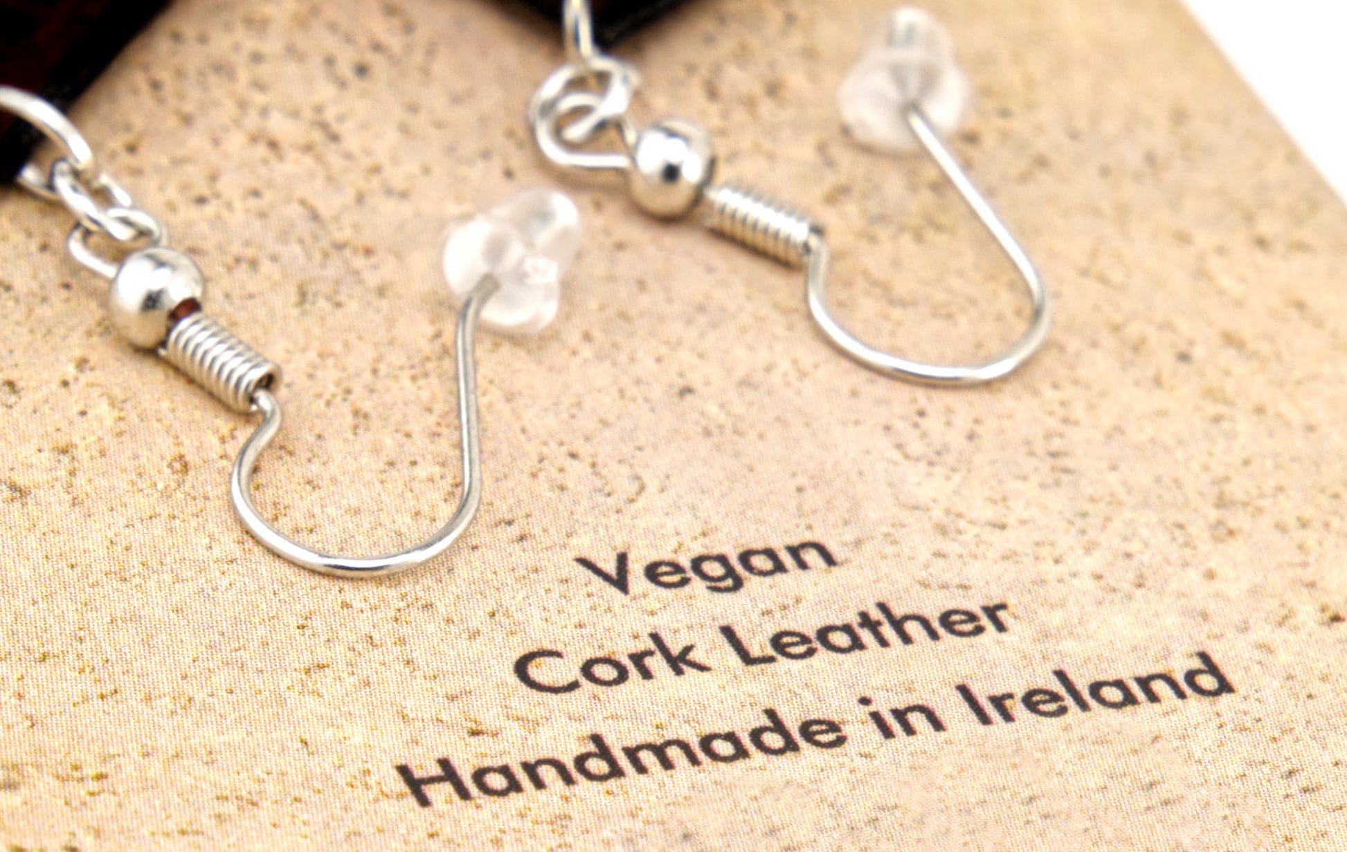 These turquoise cork clover earrings combine geometric symmetry with the organic character of cork.