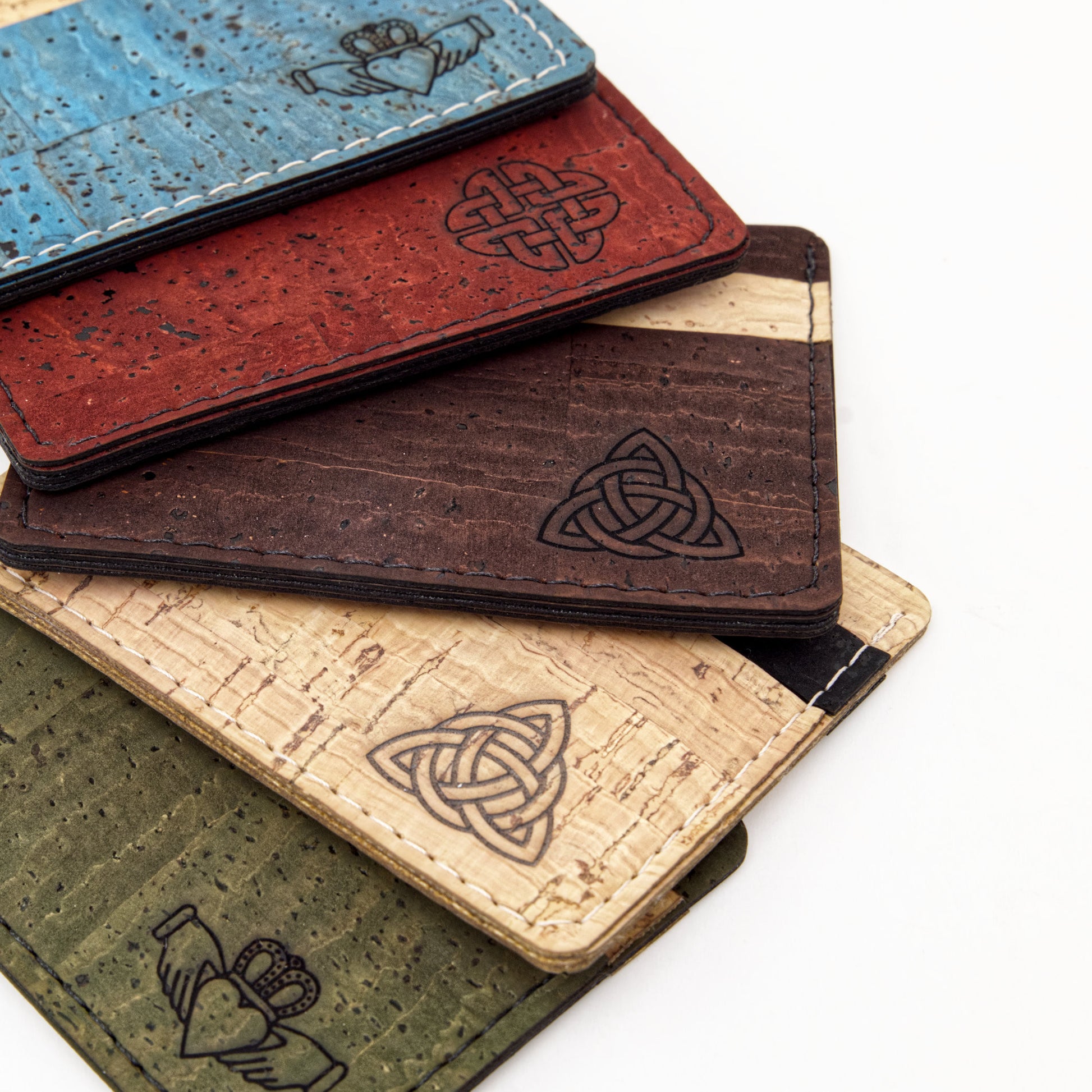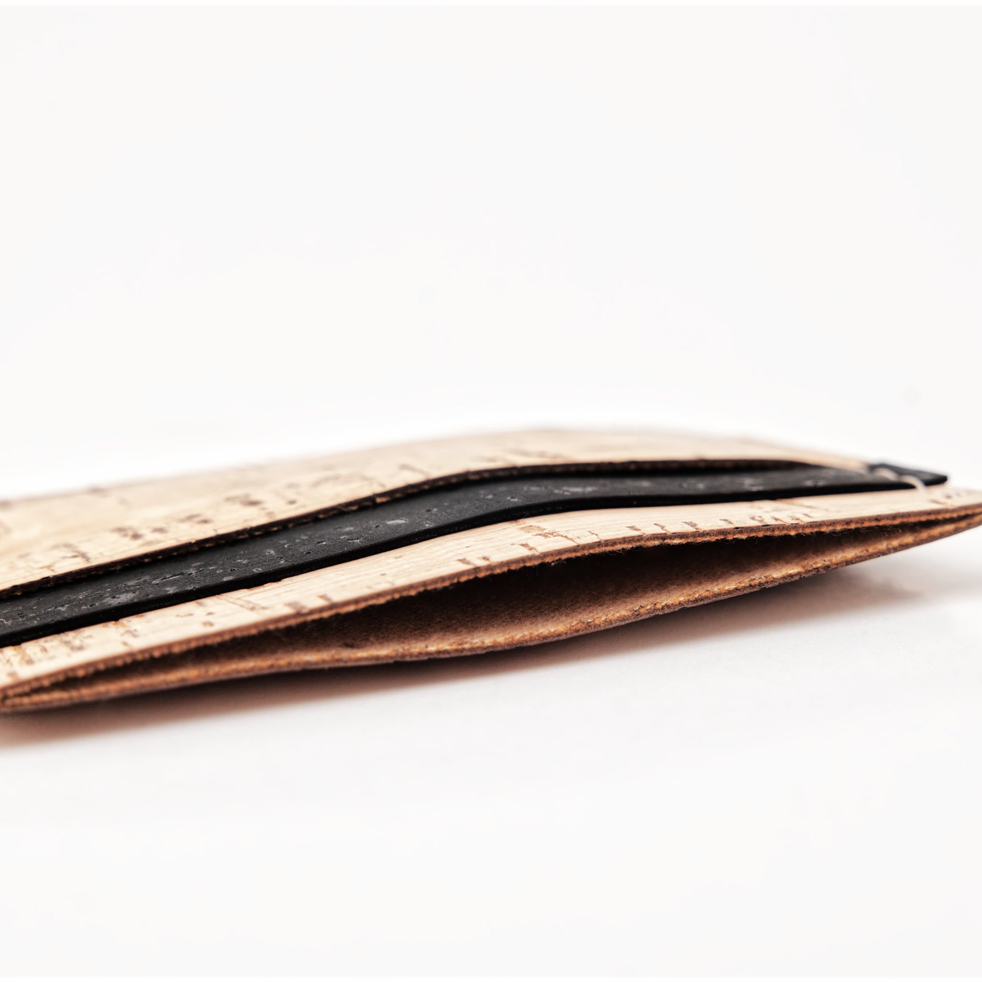 Cork is sustainably harvested from cork oak bark without harming the tree. Naturally soft, lightweight, and resistant to everyday wear, it is easy to maintain and built to last. Each wallet carries its own distinctive grain pattern, making every piece quietly unique.
